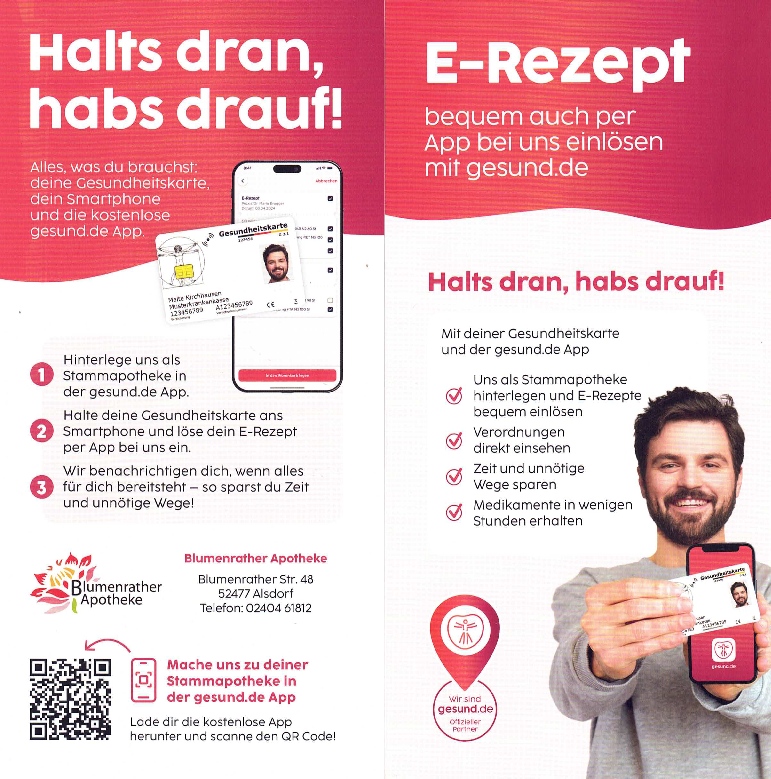 Unser Apotheken-Team steht Ihnen jederzeit für Rückfragen zu Verfügung. Gerne helfen wir Ihnen auch dabei, die gewünschte App auf ihrem Smartphone zu installieren. Sprechen Sie uns einfach an – Wir freuen uns auf Sie! |