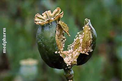 Medizinisch verwendet wird der aus den unreifen Samenkapseln gewonnene Milchsaft. Den getrockneten Milchsaft bezeichnet man als Opium. Wegen seiner Toxizität und bestehender Suchtgefahr wird Schlafmohn als Heilpflanze nicht mehr eingesetzt. Ihre chemisch isolierten Inhaltsstoffe haben jedoch einen festen Platz in der Schulmedizin. Das Opium enthält stark wirksame organische Verbindungen, sogenannte Alkaloide. Die isolierten Alkaloide dienen als Wirkstoffe in Fertigpräparaten. Beispiele für isolierte Alkaloide sind Morphin, Codein und Papaverin. Morphin ist ein wirksames Mittel gegen starke und stärkste Schmerzen, Papaverin löst Krämpfe in Magen, Darm und Galle, Codein stillt Hustenreiz. Neben den natürlichen Alkaloiden sind zahlreiche synthetisch hergestellte Substanzen mit ähnlichen Eigenschaften auf dem Arzneimittelmarkt zu finden, etwa Methadon. Opioide ist die Sammelbezeichnung für alle Wirkstoffe, egal ob natürlich oder synthetisch. Ein bekanntes Opioid ist das Suchtmittel Heroin – ein Gemisch aus Morphin und verschiedenen synthetischen Substanzen. Als Opiate werden hingegen nur die isolierten, natürlichen Inhaltsstoffe des Schlafmohns bezeichnet, wie Morphin oder Codein. Opioide fallen ab einer bestimmten Wirkstoffkonzentration unter das Betäubungsmittelgesetz. Anbau und Vertrieb von Schlafmohn sind verboten.